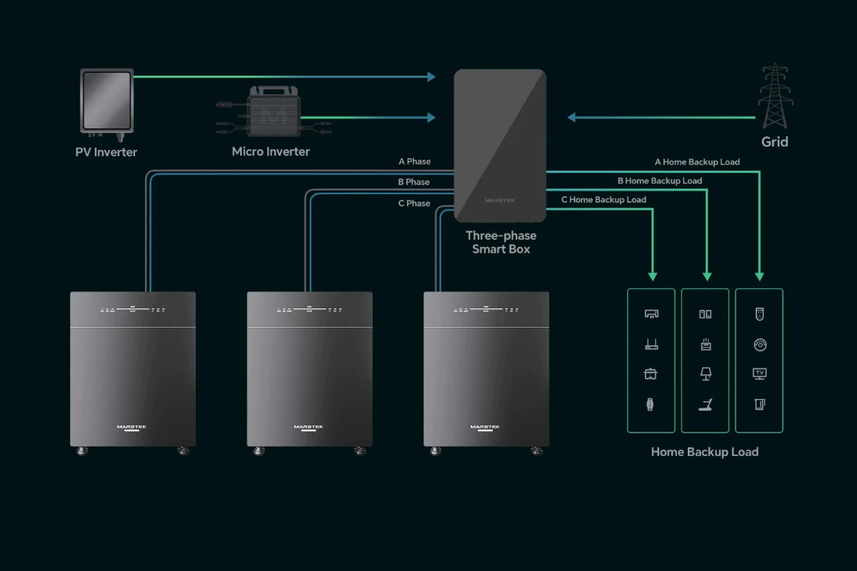 - Erweiterbare Kapazität: Bis zu 4 Einheiten pro Phase anschließbar, für eine maximale Leistung von 10 kW und 20,48 kWh Kapazität.